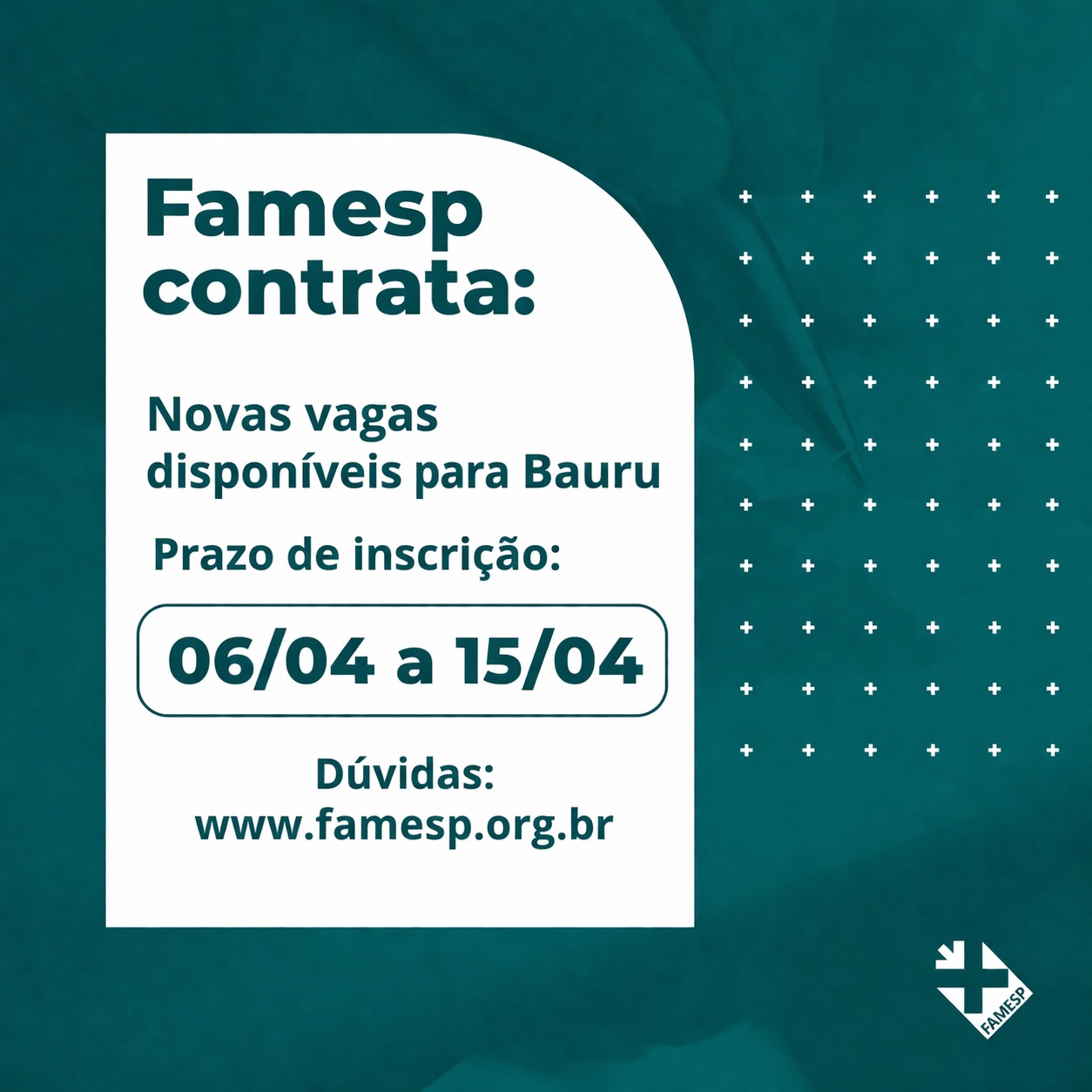 Disponível em: https://sampi.net.br/bauru/noticias/2915389/bauru-e-regiao/2025/07/famesp-abre-novos-editais-de-processos-seletivos-em-bauru