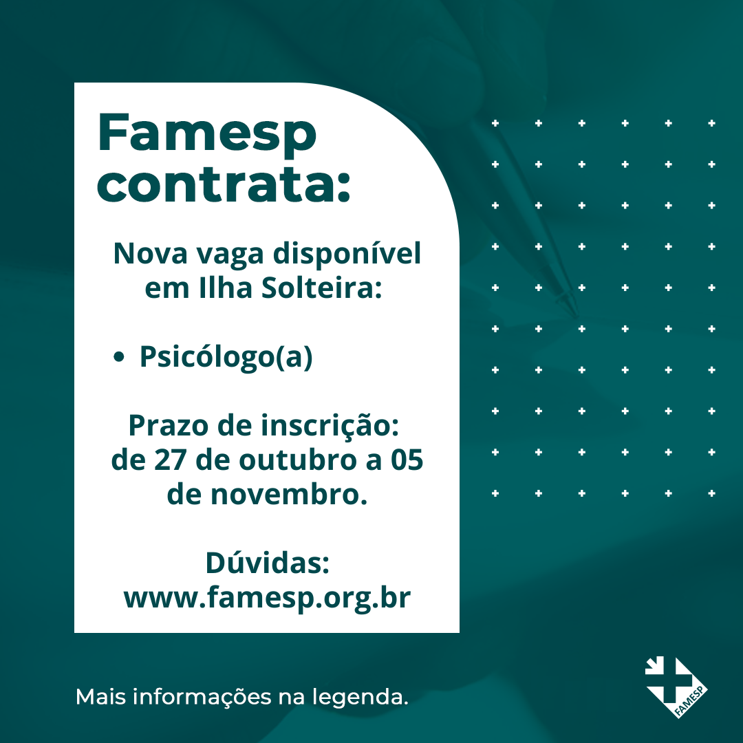 Famesp abre processo seletivo para vaga de psicólogo em Ilha Solteira