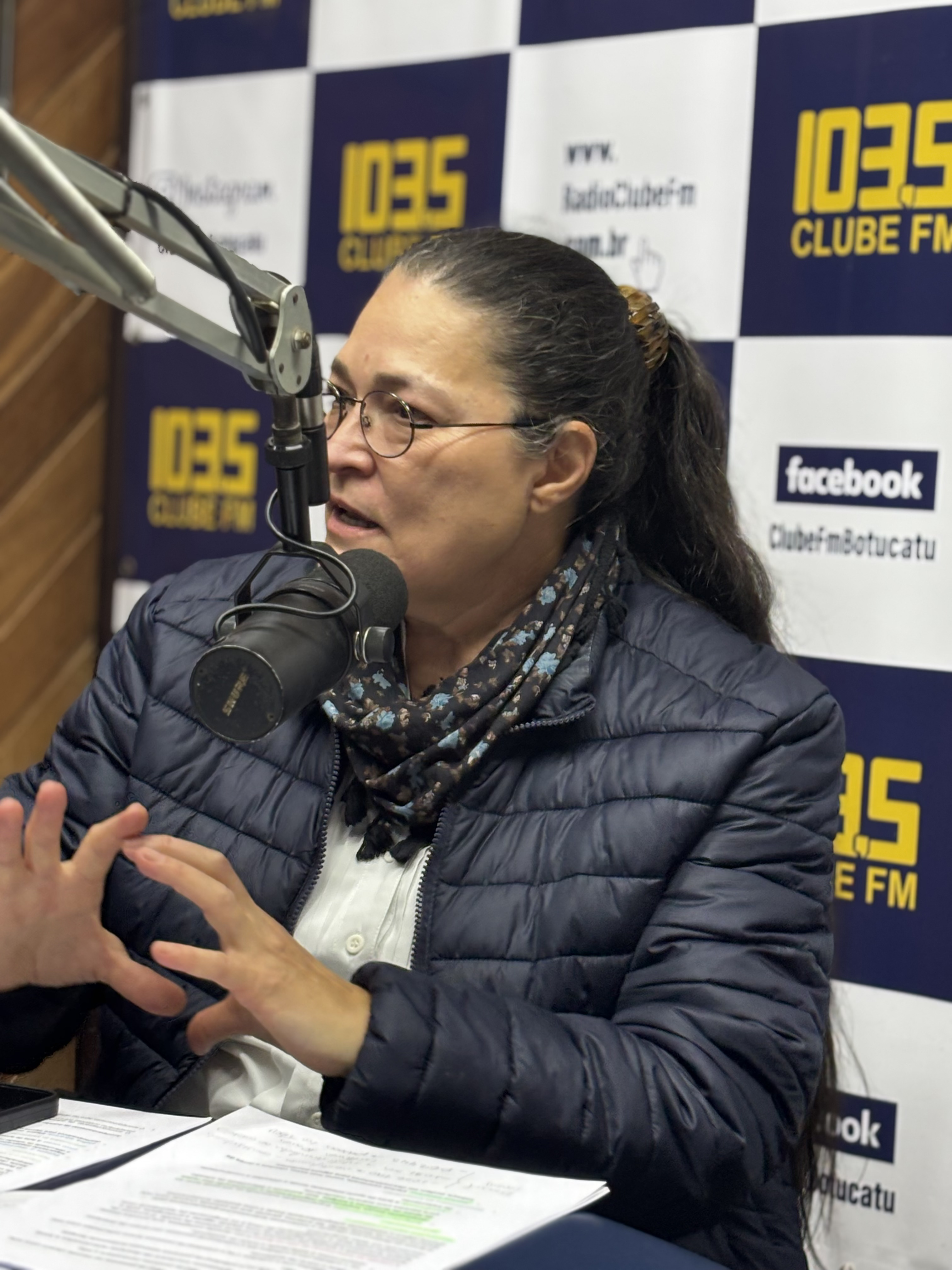 Vania Vieira de Melo divulga a 4ª Jornada Multiprofissional de HIV/AIDS do SAEI-DAM nas rádios de Botucatu